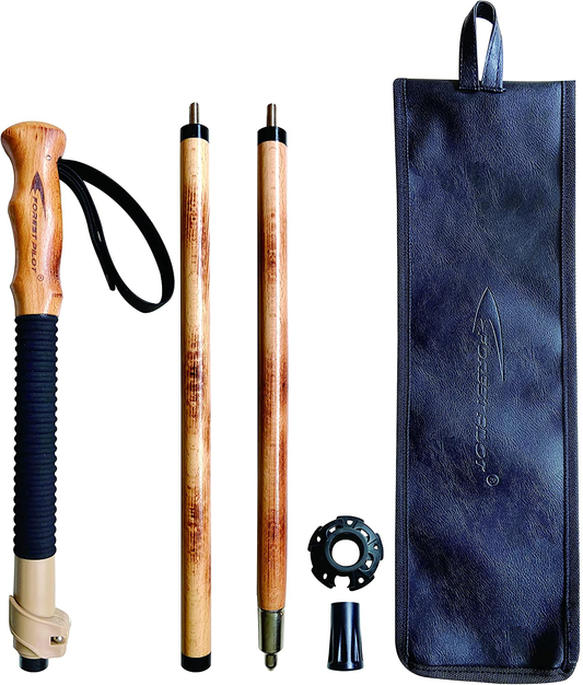 FOREST PILOT Trekking Poles- 1-Pc Pack - Adjustable Hiking or Walking Stick –Strong, Natural Beech Wood - Quick Adjust Flip-Lock - Beech Wood Grip, Leather Strap
