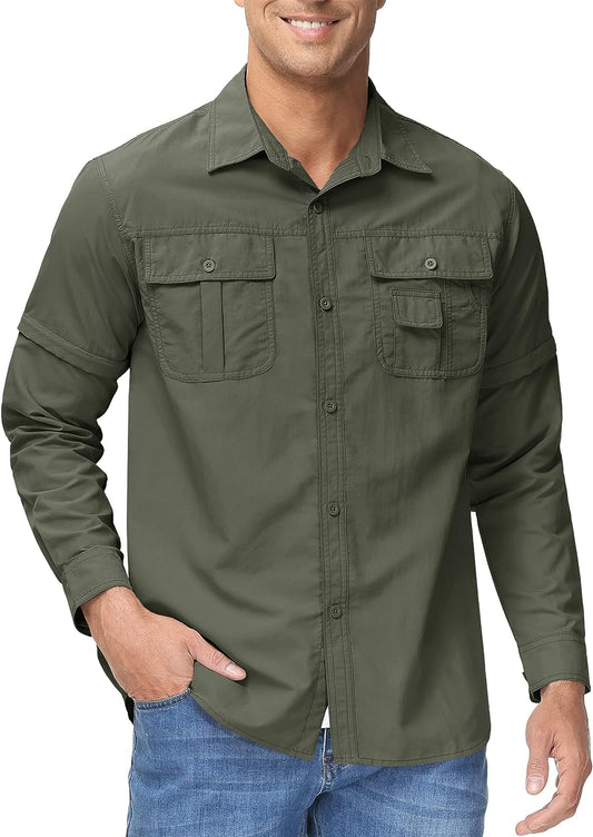 Men'S Breathable Quick Dry UV Protection Solid Convertible Long Sleeve Shirt