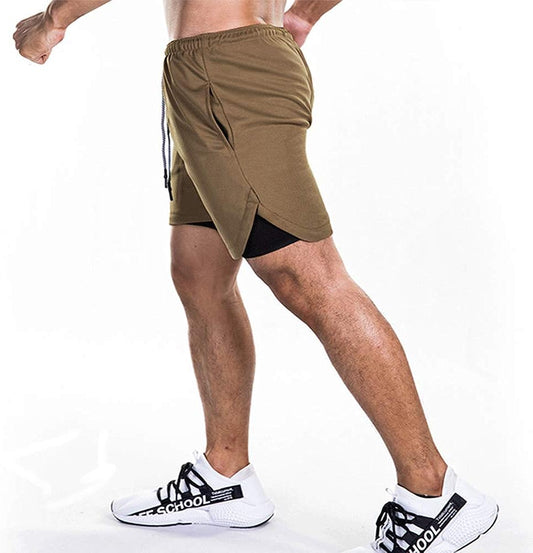 Men'S 2-In-1 Bodybuilding Workout Shorts Lightweight Gym Training Short Running Athletic Jogger with Zipper Pockets