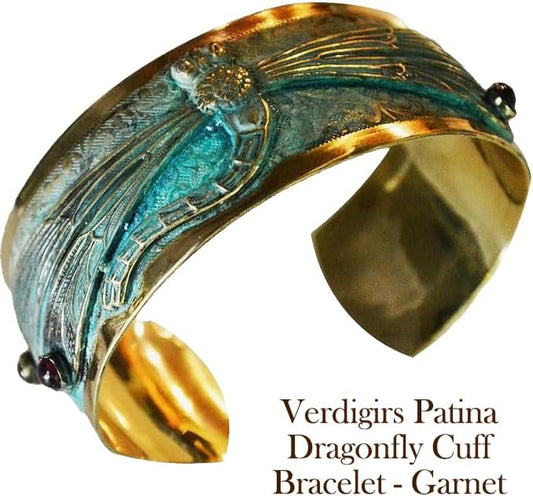 Dragonfly Cuff Bracelet - USA Made - Genuine Garnet