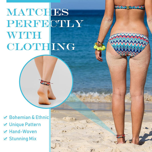 18 Pcs Boho Surfer Bracelet Ankle Adjustable Beaded Anklets Unisex Handmade Braided Bracelet Waterproof Surfer Beach Bracelet Colorful Anklet Bracelet String Rope Jewelry for Women Men (Boho Style)