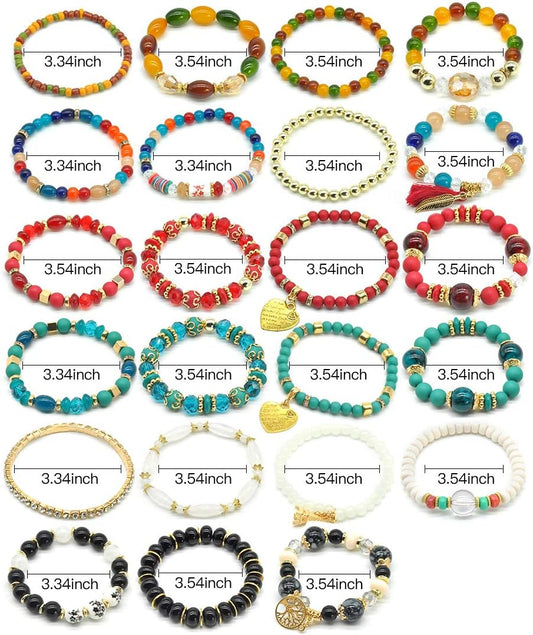 Bohemian Bracelet Sets for Women - 6 Sets Stackable Stretch Bracelets Multi-Color Boho Jewelry for Women Hippie Bracelets Dainty Jewelry Best Friend Gift