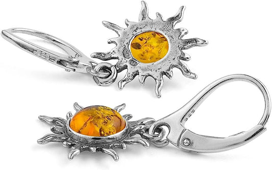 Amber Sterling Silver Flaming Sun Leverback Earrings