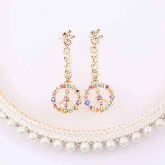 Peace Sign Earrings Heart Flower Diamond Drop Earrings for Women Girls, Zirconia Love Heart Pendant Dangle Earring, Silver Rose Gold Chain Birthday Valentines Day Jewelry Gifts