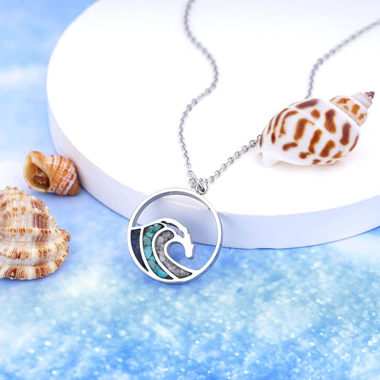 Turquoise Wave Necklace for Women Tumbled Gemstone Chips Pendant Necklace Dainty Ocean Wave Necklaces for Women Girls Surfer Beach Jewelry Gifts