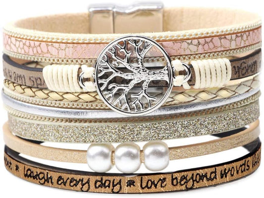 Inspirational Tree of Life Leather Friendship Bracelets for Women, Birthday Christmas Jewelry Gifts Mom Her