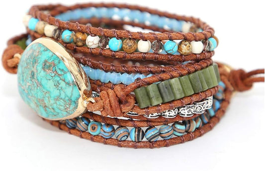 Boho Handmade Natural Stone Wrap Bracelets Turquoises Crystal Beads Bracelet Jewelry